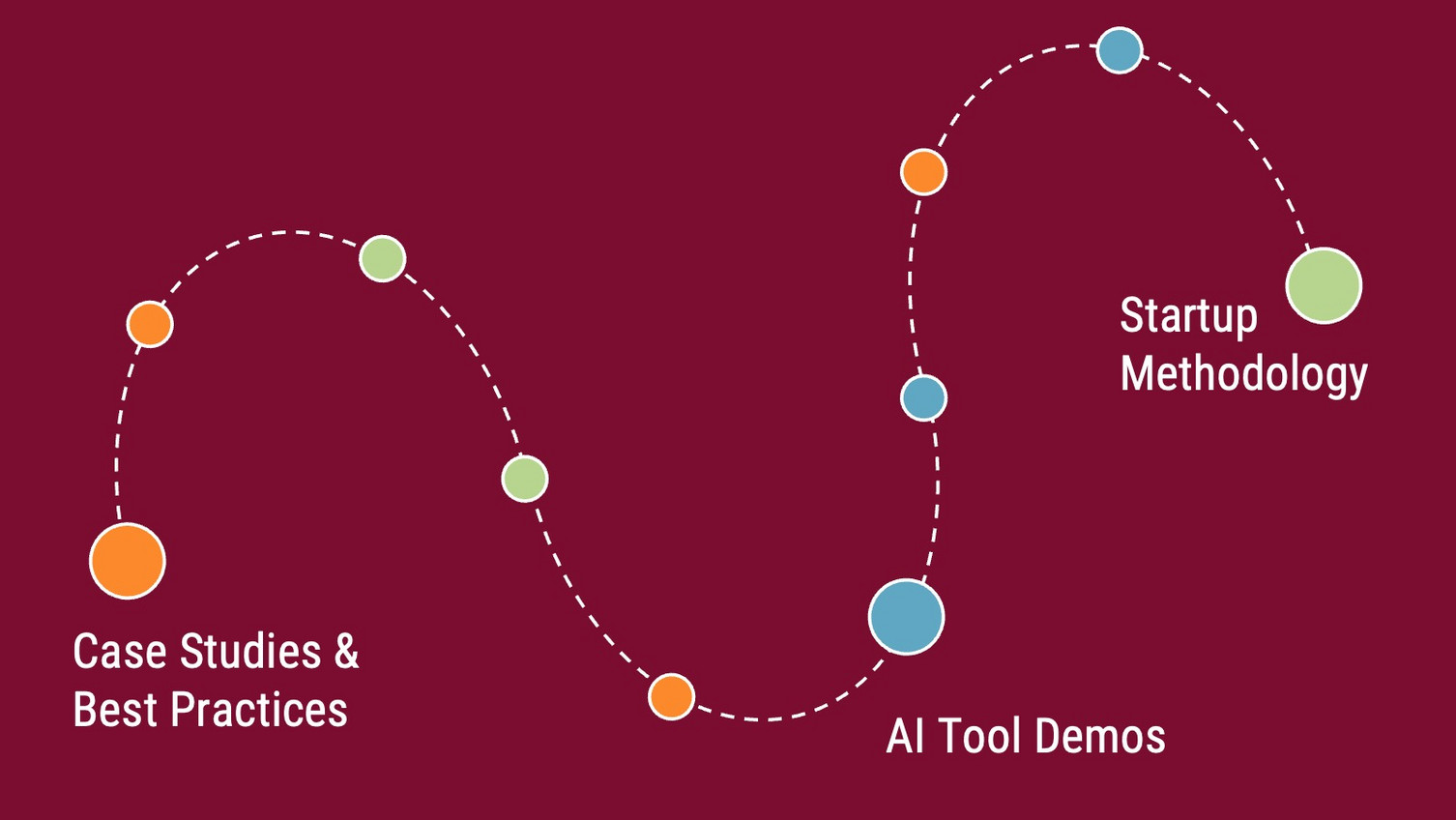 - Hands-on workshops with no-code tools, AI platforms and prototyping methods